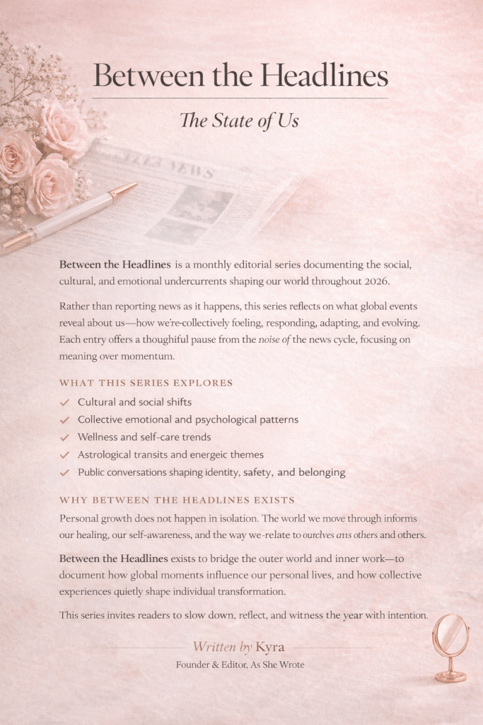 I’m excited to announce Between the Headlines, a new blog series where I’ll be documenting the themes, cultural shifts, and collective energy shaping our world each month in 2026.